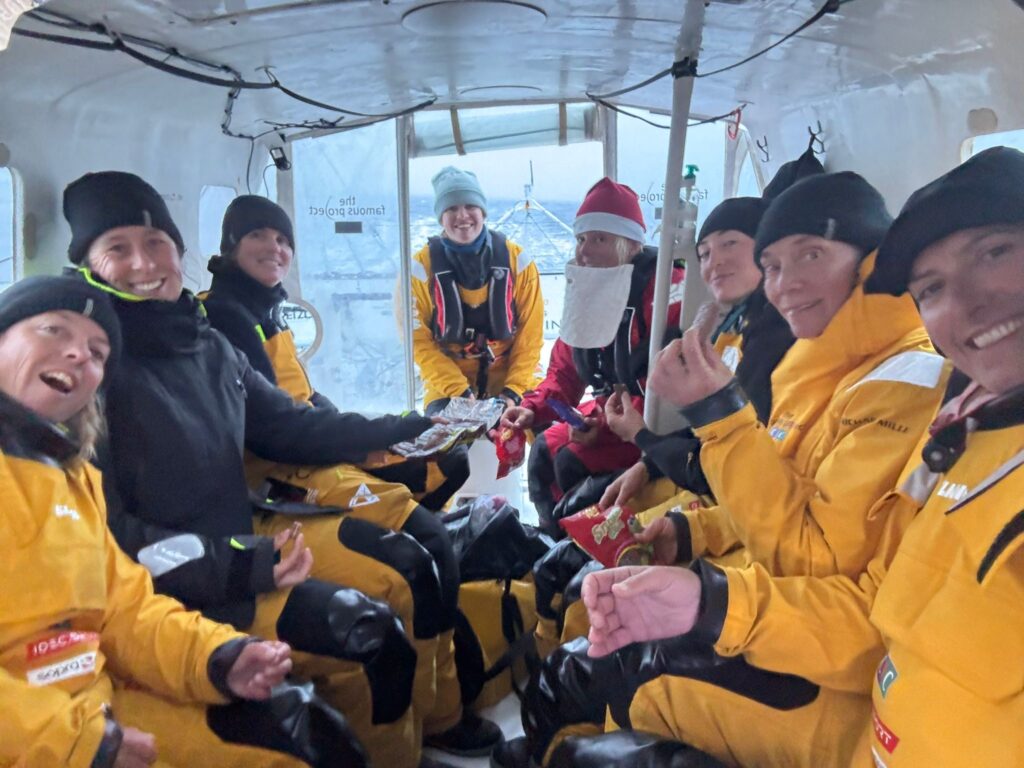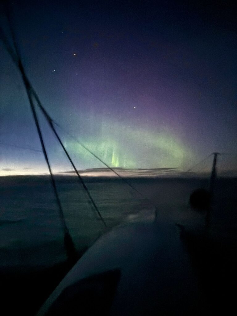 Santa popped by on his own trip around the world to wish the girls well and, on Boxing Day, the team left the Indian Ocean behind and entered the Pacific heading east toward the South American continent. Speeds dropped as they headed further and further south but, as they neared their halfway mark of 11,000 miles, they were treated to the dazzling sight of Aurora Australis.