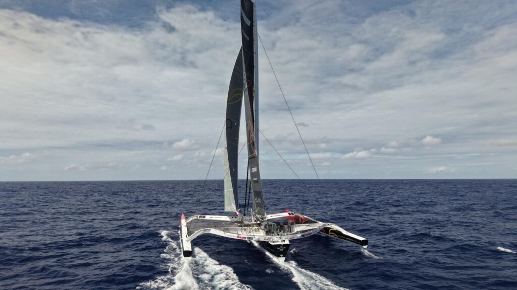 The doldrums lived up to their reputation, significantly hampering progress as the crew worked their way northward. When the powerful north-easterly trade winds finally arrived and sail reduction became necessary, the persistent issue with the mainsail hook once again proved problematic. The stubborn mechanism forced the team to undertake another complete dismantling and reassembly operation, inevitably impacting their speed and progress. During this delicate reefing manoeuvre on Saturday, they discovered a tear in the mainsail’s leach. Though repairs were swiftly executed, they remained limited to sailing under a double-reefed mainsail and J3. Combined with the navigation of sargassum algae fields, the home stretch is proving far from straightforward.